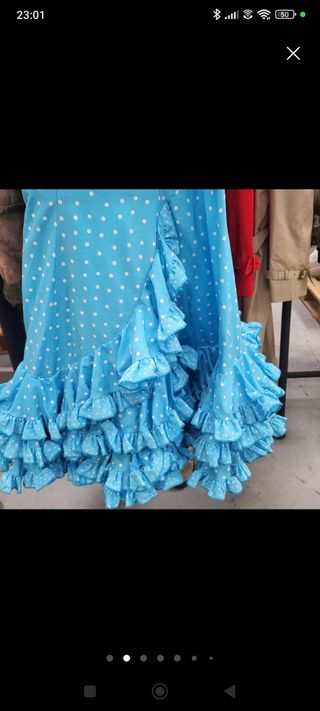 Vestido de flamenca de diseño. Es una tela de calidad y muy ligera. Lleva enaguas con bolsillo. Va forrado. Talla como una XS o una 34. Tiene para sacarle si lo necesitas. Ideal para adolescentes de 13 a 16 años
