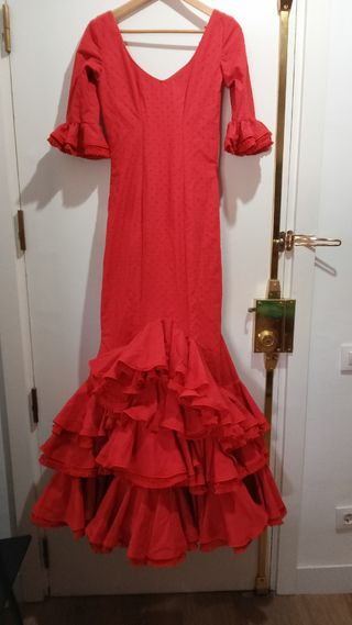 Traje de flamenca Rojo perforado. Hecho a mano, Talla 34-36. Tiene tela para sacar.Usado una sola vez. Muy bien cuidado. Como nuevo.En perfecto estado. Es monísimo para adolescentes. #trajedeflamenca #flamenca #vestidodeflamenca #