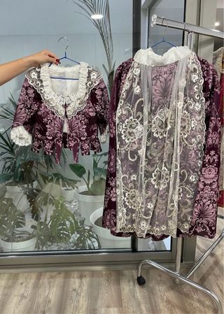 manteletas inlcuidas Falda - largo: 84 cm - cintura: 57 cm Corpiño: - espalda: 34 cm - pecho: 32 cm - largo manga 32 cm - ancho de manga 21 cm - largo de pala 31 cm - cintura 61 cm - de axila a cintura : 17 cm - hombro: 7,5 cm