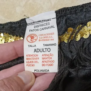 Elegante y sensual disfraz Carnaval de charlestón para mujer en color negro, ideal para Carnaval, fiestas temáticas, cabaret, años 20 o eventos especiales. Diseño estilizado con flecos que realzan el movimiento y aportan un aire sofisticado y glamuroso. Talla M-L, se adapta cómodamente al cuerpo. Marca BT Costumes. Producto NUEVO, sin estrenar, procedente del cierre de la tienda Tejidos Riaza, taller artesano español especializado en vestuario para teatro, baile, colegios y espectáculos. Calidad superior frente a disfraces de producción masiva. Incluye: vestido charlestón negro y tocado a juego. #disfrazCarnaval #charleston #años20