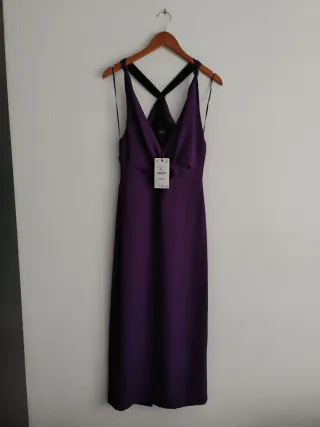 Vestido largo morado cut out Zara Talla S