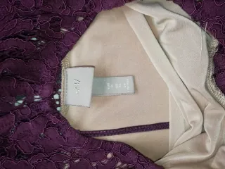 Elegante vestido de encaje con un bonito diseño. - Manga corta. - Cuello redondo. - Cierre de botón en la espalda. - Largo hasta la rodilla. - Forro color rosa. Encaje en color berenjena Ideal para bodas, bautizos o comuniones. Esta nuevo, vendo por cambio de talla. Entrega en mano. No hago envíos
