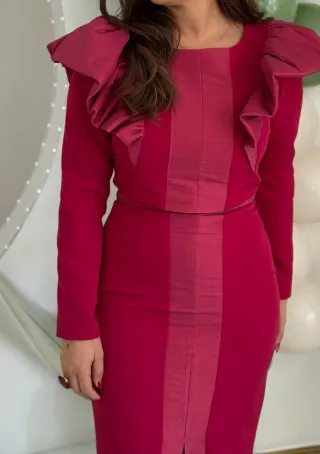 Elegante vestido midi en color frambuesa, con un detalle de aplique dorado en la zona del pecho.Detalle de acabados con pliegues. Bajo con abertura en espalda. Cierre trasero con cremallera oculta en costura. - Corte entallado. - Largo midi. Zara Talla S Vestido ideal para invitada evento ceremonia boda bautizo comunión graduación #invitadaperfecta #invitada #invitadaboda #invitadaideal #invitée #invitéemariage #inviteparfait #weddingdress #inviteeceremonie #invitadalowcost #invitadaconestilo #mariage