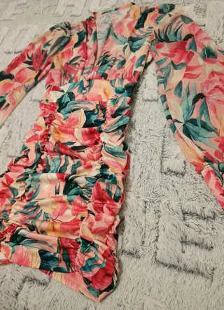 Vestido con estampado floral vibrante y mangas largas abullonadas. El diseño presenta un escote pronunciado y detalles fruncidos en la cintura y falda para un ajuste favorecedor. Para vestir, fiesta, noche, boda, bautizo, comunión. Está nuevo a estrenar sin etiqueta. 🎁🔝 Si coge más prendas, podemos hacer un lote de ropa económico‼️ pregunte sin compromiso 🙋🏻♀️🙂
