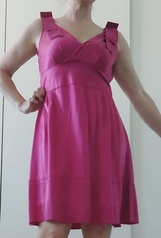 Vestido de coctel / ceremonia de Carolina Herrera, talla 12 (40-42 española) De seda 100% en el color pantone del año 2023, Viva Magenta/ rosa buganvilla Corte favorecedor ajustado bajo el pecho para realzar el escote y un poco suelto en la falda para no marcar zonas conflictivas. Su colorido te hara destacar sin dejar de ser elegante gracias a su corte sencillo y clásico, con un ligero toque moderno gracias a sus puntadas vistas. Ideal para eventos, bodas bautizos, comuniones... Puesto solo una vez y llevado al tinte.