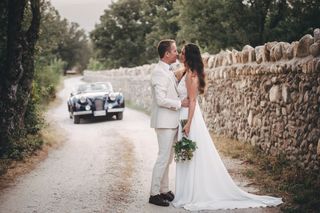 Compré este chal fino para usar el día de mi boda pero al final no lo utilicé. Queda genial con vestido de novia y la caída queda muy bonita. Tiene una pequeña mancha pero con la caída de la tela no se ve (incluida en las fotos)