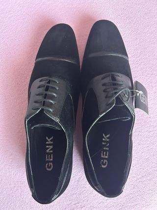 Vendo zapatos de vestir marca GENK, color negro, talla 44, completamente nuevos sin estrenar (con etiqueta). Modelo elegante tipo Oxford con puntera marcada (cap toe), combinando acabado liso y textura tipo ante, lo que les da un estilo más sofisticado y moderno. Perfectos para: • Bodas • Eventos formales • Gala / Black Tie • Traje o esmoquin • Cenas de empresa o actos profesionales ✔ Marca GENK ✔ Diseño elegante y estilizado ✔ Suela resistente ✔ Talla 44 ✔ Sin uso – estado impecable Zapato ideal si buscas elegancia a precio muy inferior al de tienda.