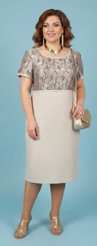 Elegancia atemporal fabricada en España! Este espectacular vestido de la firma Querdani Donna es la pieza perfecta para quienes buscan distinción y calidad en eventos especiales (bodas, bautizos, comuniones o cenas de gala). Su diseño combina texturas nobles con un corte que realza la figura de forma impecable. Detalles que lo hacen único: Diseño de contraste: Cuerpo superior en un sofisticado brocado con relieve en tonos metalizados y champán, con un delicado motivo floral/orgánico que capta la luz de forma espectacular. Tejido premium: La falda está confeccionada en una mezcla de 55% lino y 45% algodón