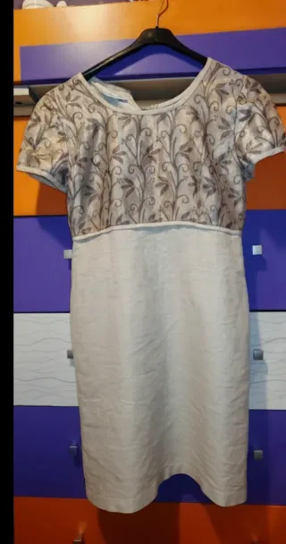 Vestido de comunión de lino entero con unos bordados en la espalda y en las mangas muy comodo y fresquito,manga al codo,si estas intersad@ hablame por privado y le mando más fotos.Talla10.