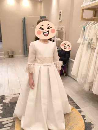 Precioso vestido de comunión para niña, en color blanco roto. Ideal para una ocasión especial. - Talla 12 años - Diseño elegante y delicado. - Confeccionado con tejido de gran calidad. - casi a estrenar -de rosa clara