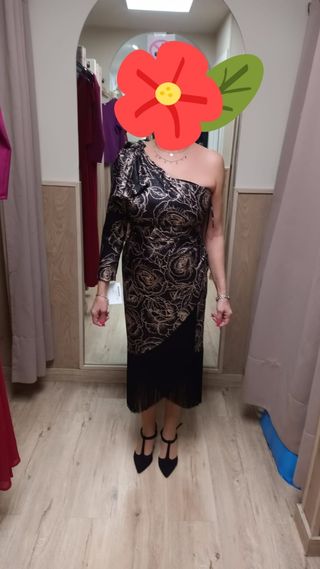 vestido a estrenar con etiqueta de tienda de boutique talla M negro y dorado