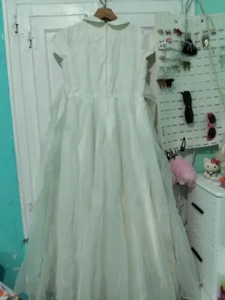 Vestido de comunión elegante con un diseño clásico. - Cuerpo con cuello Peter Pan. - Cinturón de tela a la cintura. - Falda vaporosa con varias capas de tul. Precio negociable