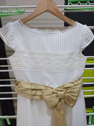 vestido en perfecto estado, blanco Marfil, lavado en tintorería una vez usado, talla 135cm 10-12 años, se le ha ampliado el talle con una puntilla, se puede quitar y no deja marca.
