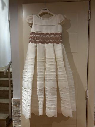 Vestido de comunión que incluye el vestido, cancán, cinturón hecho a mano y dos diademas. Talla 130/140 cm