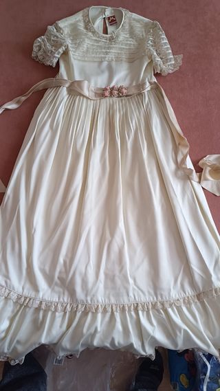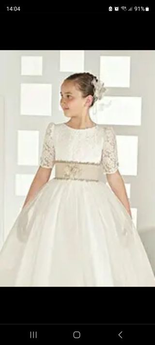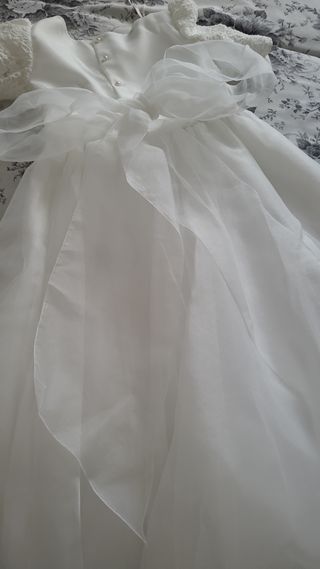 Vendo hermoso vestido de comunión de niña! Tiene un contorno de 115 cm y una longitud de 115 cm, en un elegante color blanco roto. Incluye un cancán para darle volumen, una rebeca de punto, y unas bailarinas número 35. Todo está en perfecto estado y fue utilizado solo una vez, el día de la comunión. Se entrega limpio y en excelentes condiciones. ¡Es una oportunidad perfecta para que tu pequeña luzca radiante en su día especial! Si estás interesada, no dudes en contactarme.