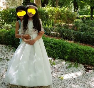 Vestido de niña precioso sin estrenar viene con el cancan sin estrenar vale para comunión o boda talla 10 (años lo tengo k mira no estoy muy segura )