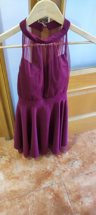 Elegante vestido corto de color burdeos, ideal para eventos especiales. Presenta un diseño con escote halter y detalles de tul. Totalmente nuevo, sin usar. - Escote halter. - Detalle de tul en la parte superior. - Falda con vuelo. Precio original: 29'90€ Especial para eventos, boda, bautizo, comunión, graduación, despedida, cumpleaños, gender reveal, aniversario, fiesta.