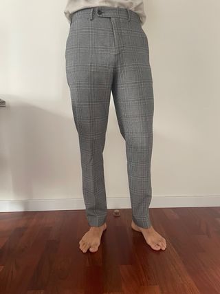Pantalón elegante de vestir marca ASOS, con pinza y corte skinny. Nuevo a estrenar, con su etiqueta original. Talla W30 (76 cm de cintura), Tall / X-Long, largo L36 (91 cm), bajo de 31 cm. El largo extra permite ajustarlo fácilmente a la medida deseada. En las fotos se aprecia tanto el pantalón con el bajo metido hacia dentro para mostrar cómo queda una vez arreglado, como el largo completo sin recortar, para que se vea la medida real (última foto) Composición: 65% poliéster, 33% viscosa y 2% elastano. Tejido elegante, con ligera elasticidad y buena caída, ideal para vestir formal u ocasiones especiales. --- Boda comunión evento