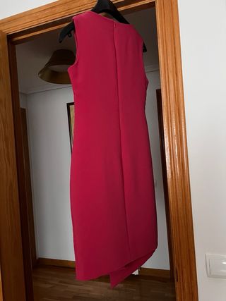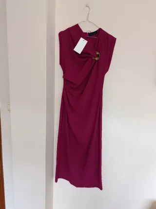 Vestido midi aplique dorado , de corte elegante, ideal para ocasiones especiales. - Diseño asimétrico. - Detalle de broche metálico/aplique dorado Talla S Zara Color frambuesa Vestido ideal para invitada evento ceremonia boda bautizo comunión graduación #invitadaperfecta #invitada #invitadaboda #invitadaideal #invitée #invitéemariage #inviteparfait #weddingdress #inviteeceremonie #invitadalowcost #invitadaconestilo #mariage