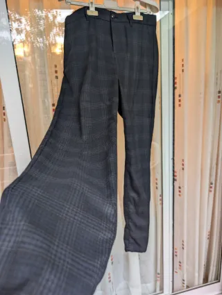 Pantalones de vestir con un diseño a cuadros en tonos grises y negros. Cuentan con un corte clásico y son cómodos para el día a día. - Diseño a cuadros. - Cintura con trabillas para cinturón. - Cierre de botón y cremallera. Personas responsables gracias. Entrega en la parada de metro Llucmajor L4.