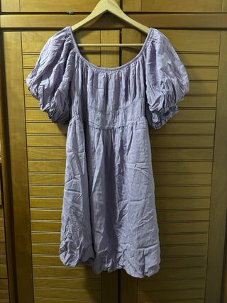 Vestido morado con mangas abullonadas