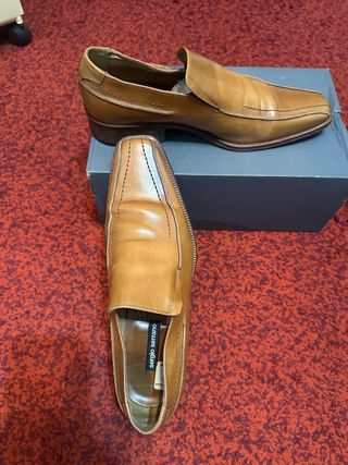 Elegantes zapatos de vestir para caballero. - Diseño clásico. - Puntera cuadrada. - Material de cuero.