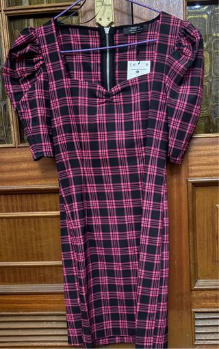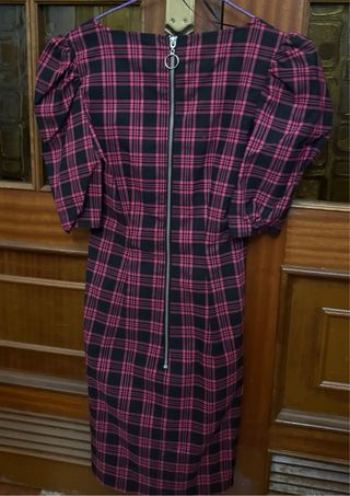 Vestido de Bershka con estampado de cuadros. - Diseño con mangas abullonadas. - Escote en forma de pico. - Cremallera central. -Cualquier cosa no dude en consultar .