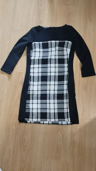 Vestido elástico con estampado de cuadros. - Diseño cómodo y moderno. - Manga larga. - Cremallera en la espalda. - Tejido elástico y abrigado. - Está en perfecto estado