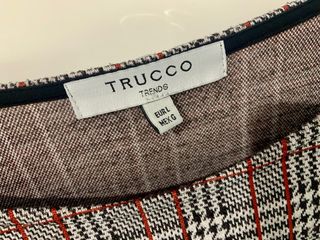 Cómodo vestido de cuadros de Trucco, con mangas con volante y tejido que no es necesario planchar. Talla L que da para 42. Las medidas se pueden consultar en las fotos para mayor precisión. La prenda se encuentra en perfecto estado y es ideal como vestido de diario.