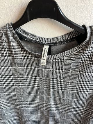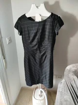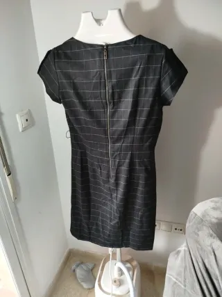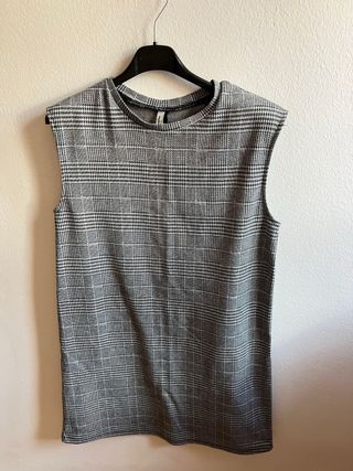 Vestido sin mangas de color gris con estampado de cuadros. Corte recto, cómodo y muy versátil. Ideal para looks de oficina, casual elegante o para combinar con blazer o chaqueta. Usado pocas veces, en muy buen estado, sin manchas ni desperfectos.
