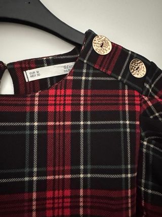 Vestido de Sfera con estampado de cuadros. - Diseño con mangas abullonadas. - Detalle de botones dorados en el hombro.
