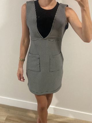 vestido de cuadros negros y blancos con bolsillos delanteros y semimanga talla M
