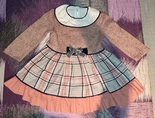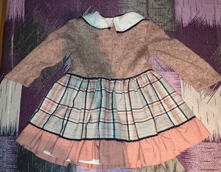 Precioso vestido para niña, ideal para otoño-invierno. Es de color marrón claro con cuadros en la falda. Tiene un bonito lazo en la cintura. - Tejido suave y agradable al tacto. - Diseño elegante y combinable. - Perfecto para ocasiones especiales o uso diario. - Talla 5 años