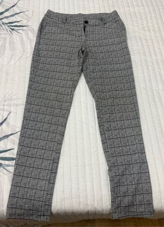 pantalon de cuadros gris talla 40. solo 1 puesta. muy comodos por la composicion de elastano. lleva bolsillos y en la parte baja de la pernera lleva una pequeña abertura