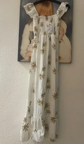 Vestido de algodón blanco de Zara con escote cuadrado y mangas abullonadas. - Diseño de volantes - Cierre de botones - Talla XS (una talla más grande también servirá, ya que el vestido es holgado) - Ajuste holgado - Como nuevo