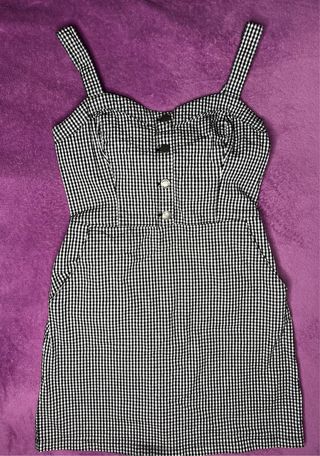 Conjunto de dos vestidos cortos de Zara. - Vestido negro. Zara - Vestido de cuadros blanco y negro. Shein