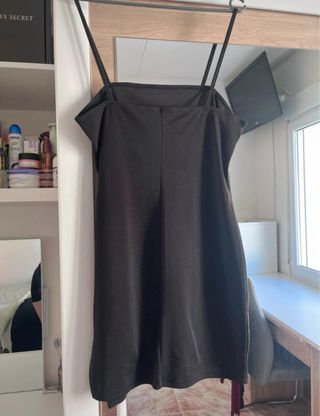 Vestido negro con tirantes finos y escote cuadrado. - Diseño liso. - Tejido suave al tacto.