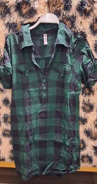 Vestido camisero verde y negro Talla S