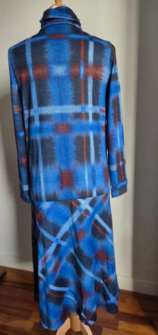 Vestido de paño cuadros azul y gris