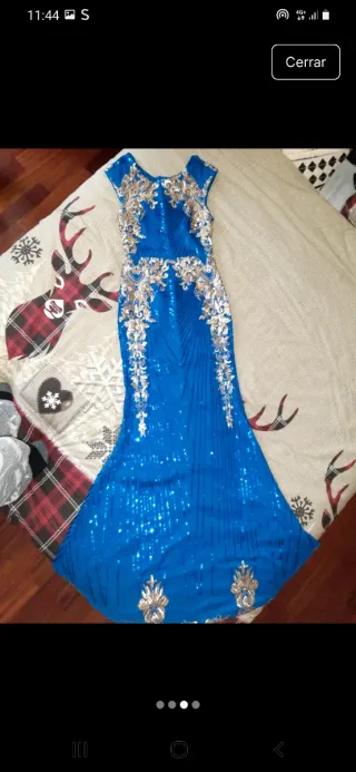 Vestido largo con un diseño brillante y elegante. Vestido largo de fiesta talla M de El corte inglés con brillos y con forro interior,como nuevo,una puesta! lo vendo porque me queda pequeño!! - Diseño con tirantes.