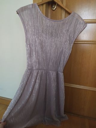 Vestido corto color Rosa pastel con detalles brillantes y espalda en V. Solo se ha usado una vez y está muy bien cuidado. La talla es XS pero da hasta la S/M perfectamente.