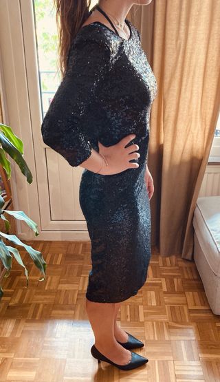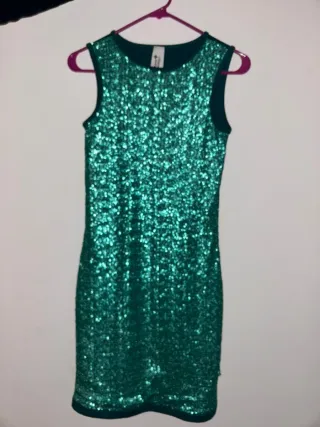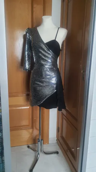 Elegante vestido de fiesta con lentejuelas brillantes. Ideal para eventos especiales. - Diseño con lentejuelas. - Corte favorecedor. 1 sola puesta 15€ precio