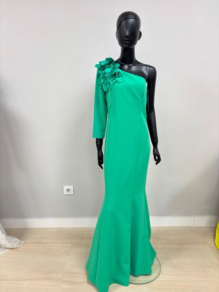 Elegante vestido de fiesta para mujer. - Diseño de un solo hombro. - Tejido vaporoso y fluido. - Corte largo y con caída. - Sin estrenar
