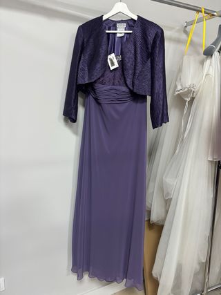 Elegante vestido de fiesta con chaqueta a juego, las últimas dos fotos es el mismo modelo, pero para que veas cómo es el primer Vestido solo queda el color morado el de la primera foto No pierdas la oportunidad de comprarte un vestido precioso nueva, a estrenar y muy elegante de lo contrario tendrías que ir en tiendas y pagar el precio que marca cada etiqueta Precio no negociable, no se aceptan devoluciones de ahí su precio tan reducido Por favor, solo gente interesada no marear - Talla 48-50. - Color morado. - Diseño con cuerpo drapeado y falda larga. - Chaqueta corta con manga larga y textura. - Cierre de la chaqueta con broche.
