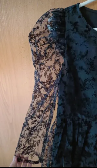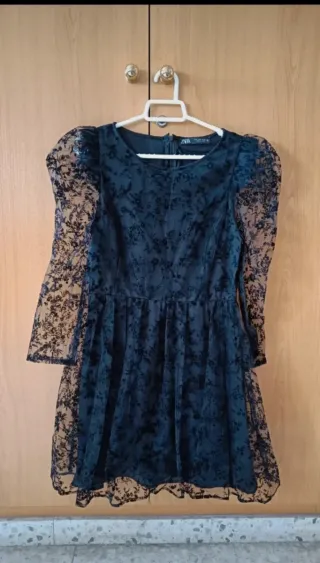 ✨ Vestido Zara negro de encaje – Talla S ✨ Vestido corto de Zara, talla S, en color negro con delicado encaje floral. Tiene manga larga semitransparente, cuerpo forrado y falda con caída ligera que estiliza mucho la figura. Corte en la cintura y cierre con cremallera trasera. 🖤 Elegante y versátil: ideal para eventos, cenas, fiestas o salir de noche. 🆕 Nuevo, sin etiqueta, en perfecto estado.
