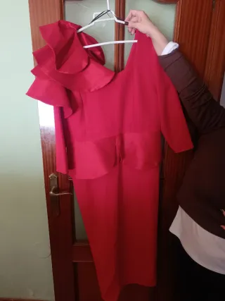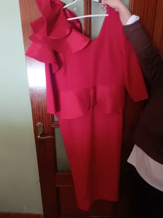 Elegante vestido rojo, ideal para eventos especiales. Su diseño con volantes en el hombro le da un toque sofisticado. - Diseño con volantes en un hombro. - Corte recto. - Largo hasta la rodilla. - XL-XXL - Puesto una vez - Podéis mirar la página web eyra brand