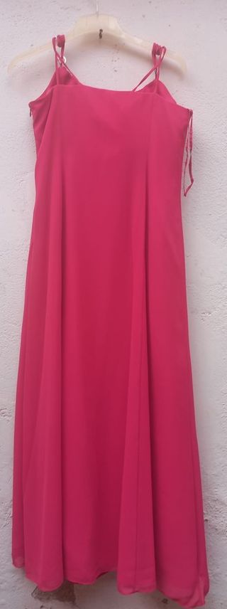 Precioso vestido largo de fiesta de la marca Selvatgi. Es de tono fucsia claro y tiene un diseño sencillo y elegante. - Tirantes finos. - Corte recto. - Tejido suave. - Composición: 80% acetato, 20% poliamida. - Aunque pone talla 40, talla como una 36. - Está en muy buen estado. Sólo se ha usado una vez. - Si vives en A Coruña te lo puedo dar en mano.