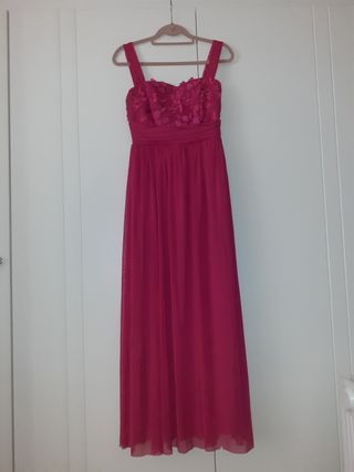 Se vende vestido de fiesta de Zara en color morado fucsia talla S, está nuevo.