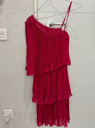 Vestido fiesta fucsia Woderow. falda plisada