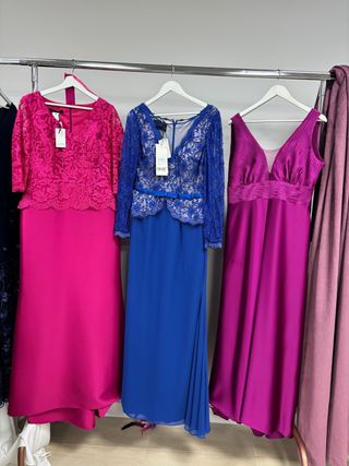 No negociable (no marear por facor ) Vestidos de fiesta para madrina o invitada, talla 42. Nuevos, sin estrenar. - Diseño elegante con encaje. - Falda larga y fluida. - Disponible en fucsia y azul Liquidación por cierre de tienda de ahí su precio tan reducido. De lo contrario, tendrías que ir en tiendas y pagar el precio que indica cada etiqueta. Envíos No se aceptan devoluciones de ahí su precio tan barato